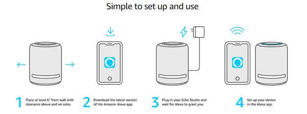 - Echo Studio: The Echo Studio is a high-fidelity smart speaker with 3D audio, delivering immersive sound and a premium listening experience. It features five speakers for powerful bass, dynamic midrange, and crisp highs.