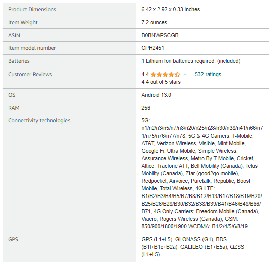 | Operating System | Android 13.0 |