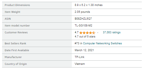 | Included Components | TL-SG108-M2, Power Adapter, Installation Guide, Rubber Feet |